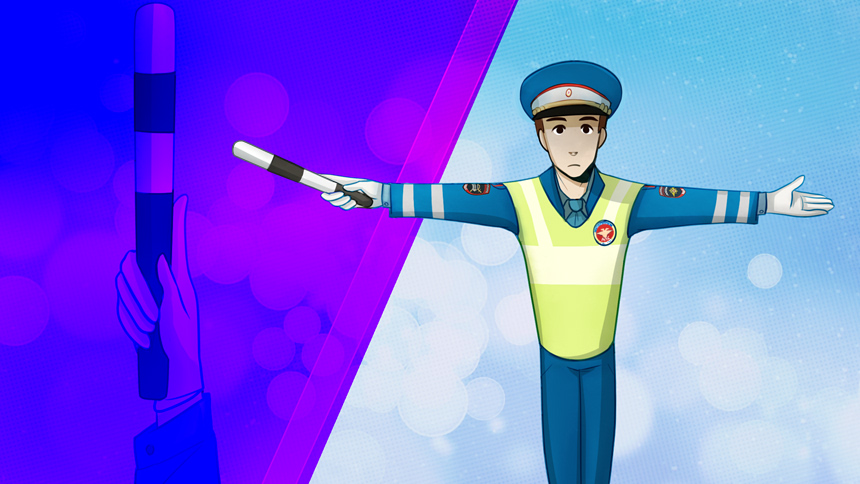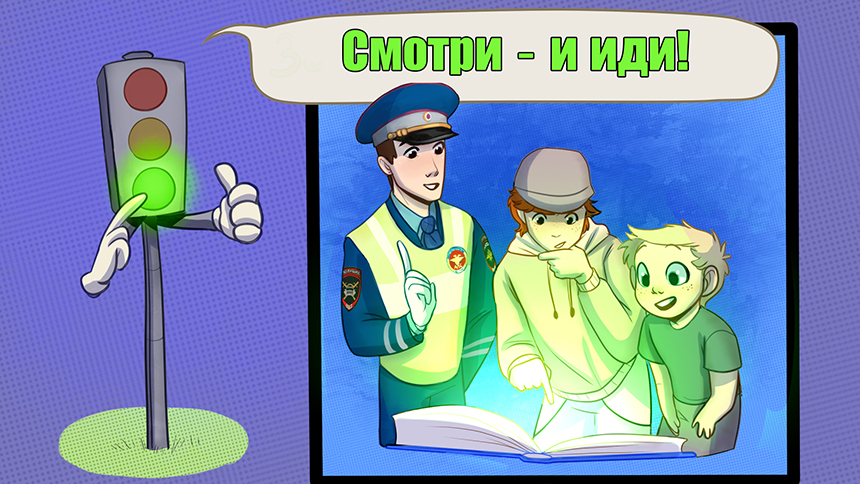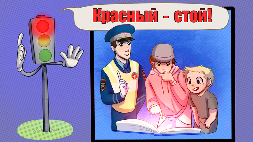 Вверх рука – замри поток пешеходов и авто, Руки в стороны – вперёд и не бойся, пешеход!