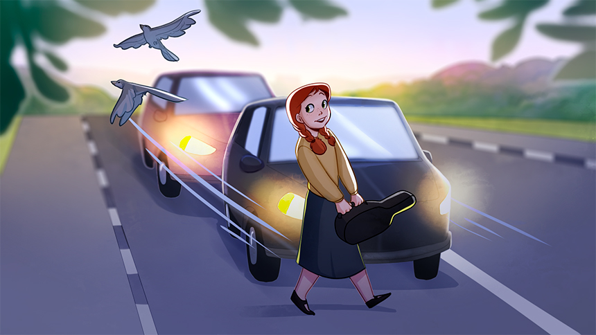 Убедись, что далеко мотоциклы и авто,