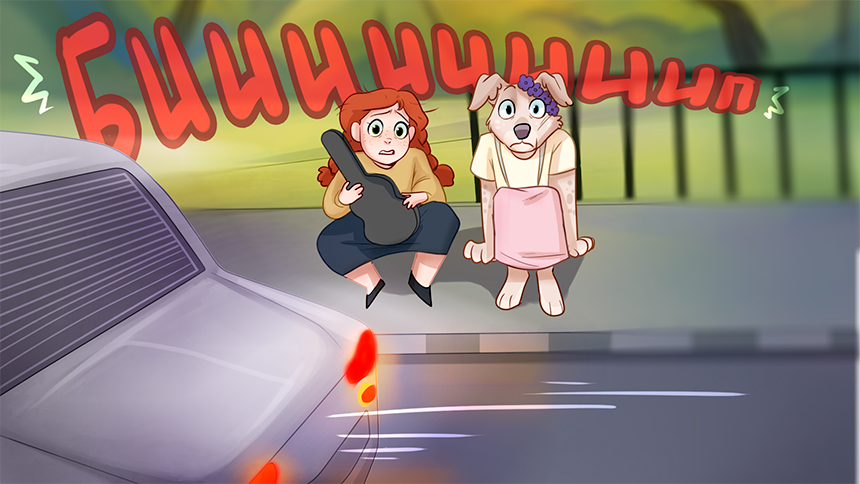 Верный друг её заметил очень близко к колесу.